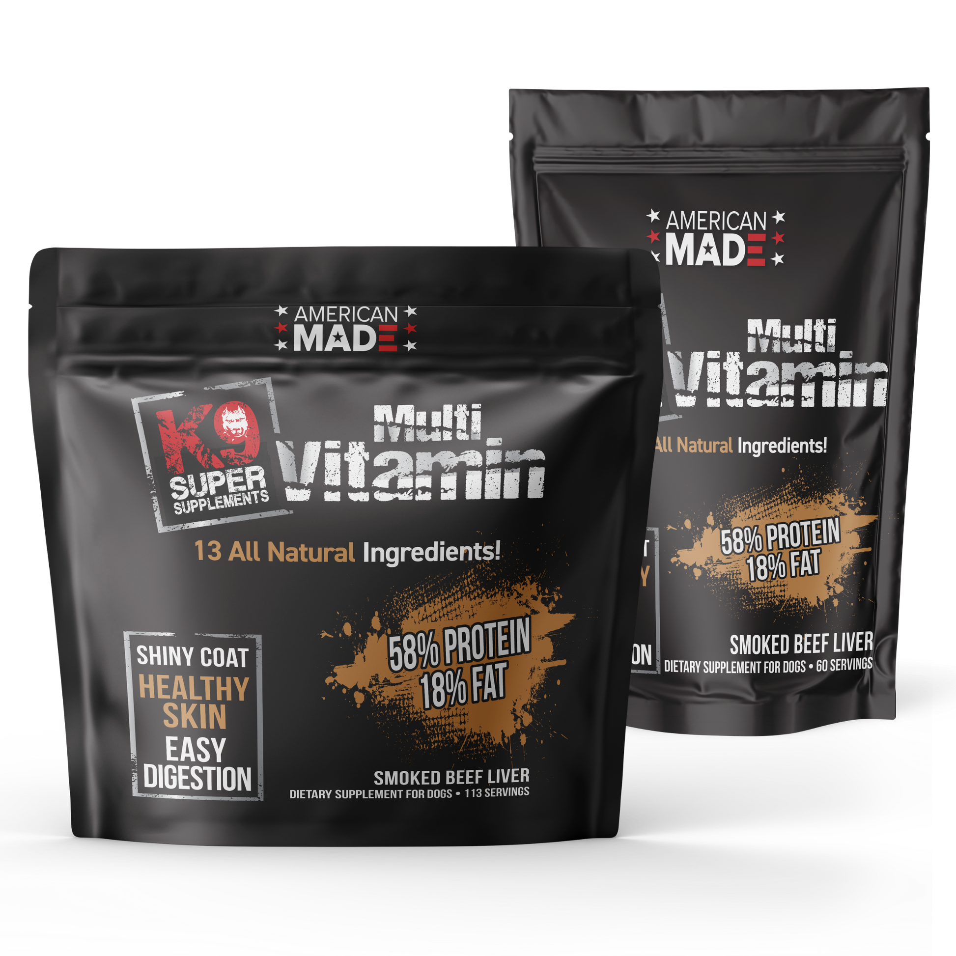 Even the most finicky dogs will crave the all-natural Smoked Beef Brisket flavor. K9 Multivitamin is packed with 14 all-natural ingredients to create a nutritional synergy that promotes good health and wellness.